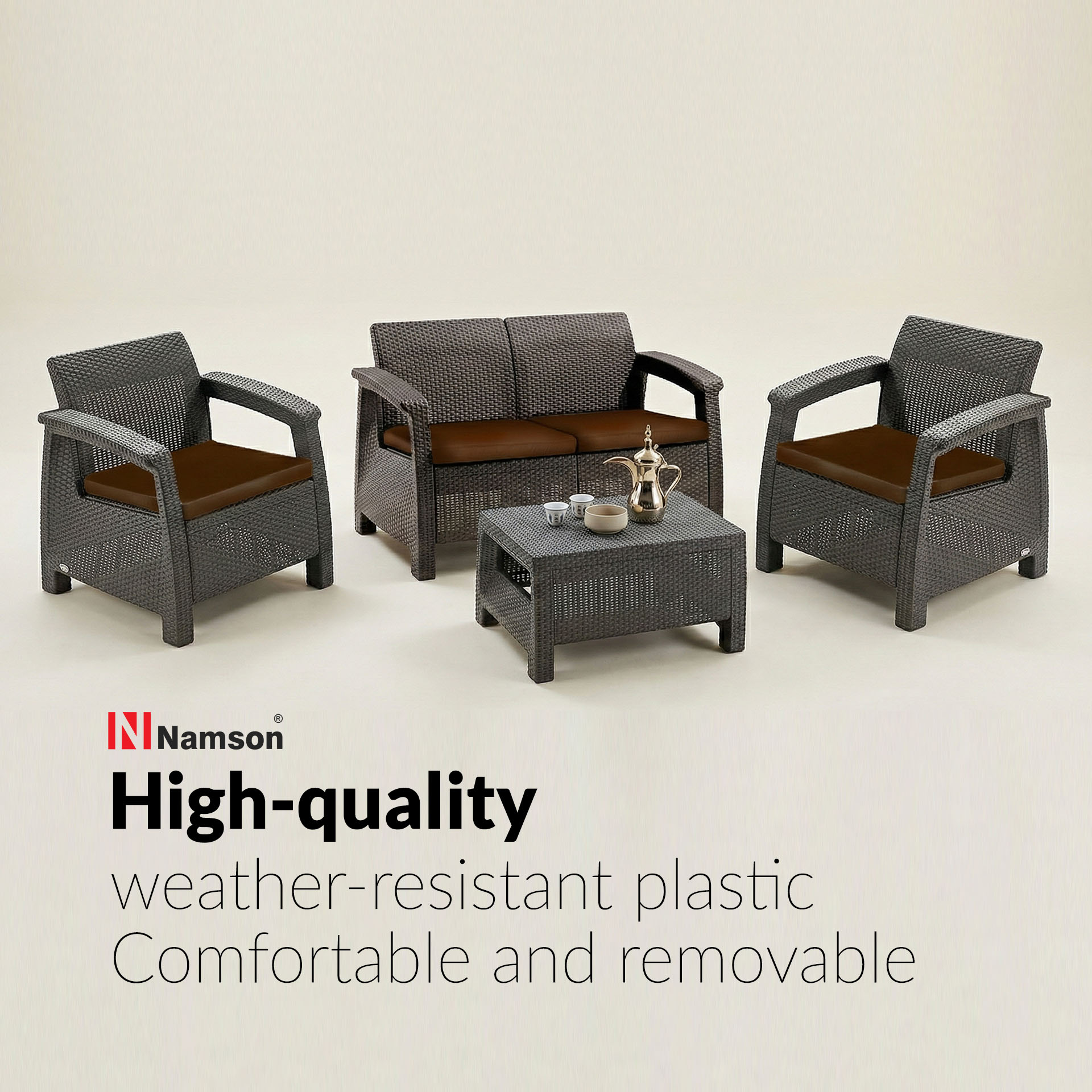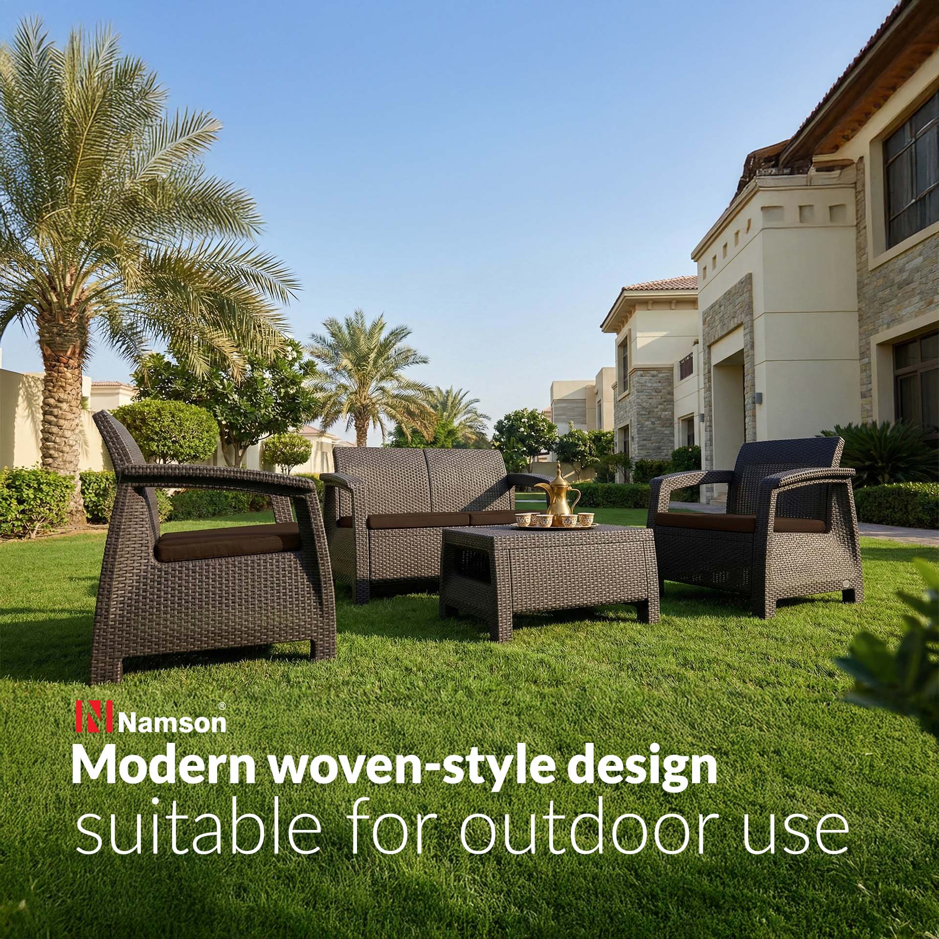 Namson 4 Seater Sofa Lounge Outdoor Furniture Set With Cushions And Accent Table 32742 Stylish And Ergonomic Design | Weather And Fade Resistant | Non-metallic Frame - Does Not Rust | Good Quality | Perfect For Backyards - Outdoor - Patio - Courtyard And More