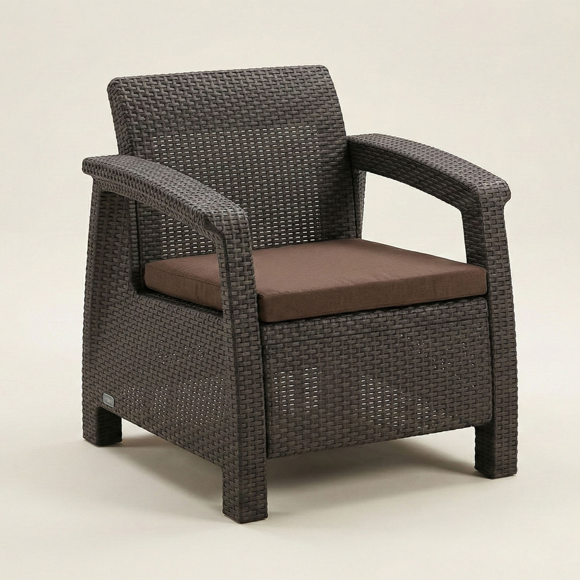 With its elegant woven-style design and solid construction, this set transforms any outdoor area into a refined and comfortable seating space.