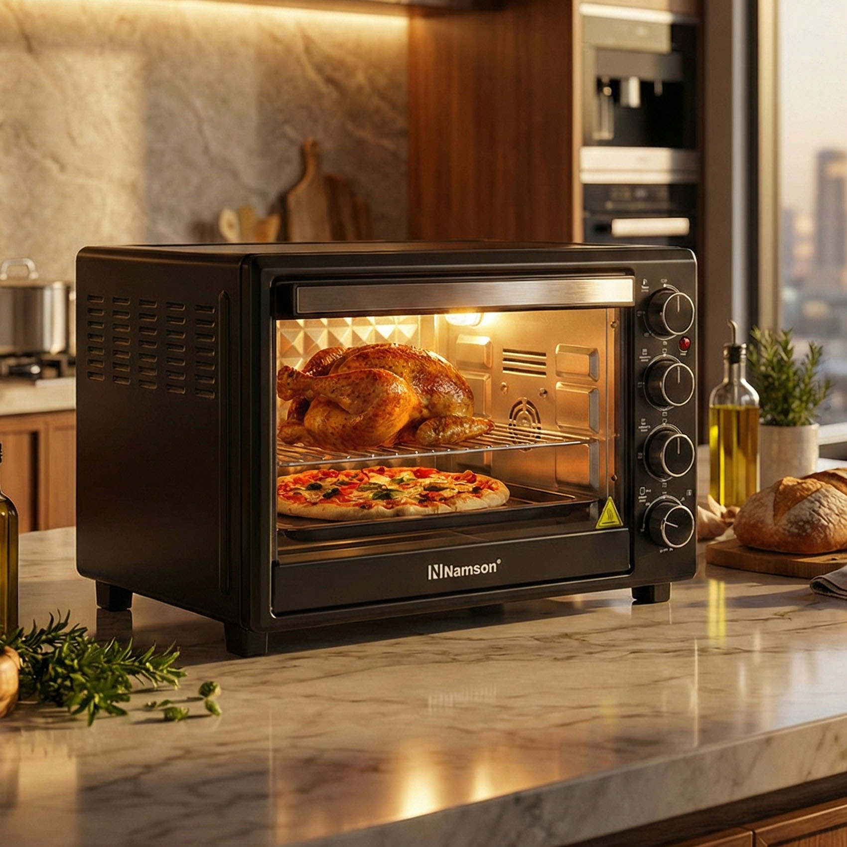 The NAMSON 45L Electrical Oven NA-7864 is a complete kitchen solution designed for efficiency, power, and versatility. Whether you're baking desserts, roasting meats, or grilling chicken, this oven delivers reliable performance with professional-level results.