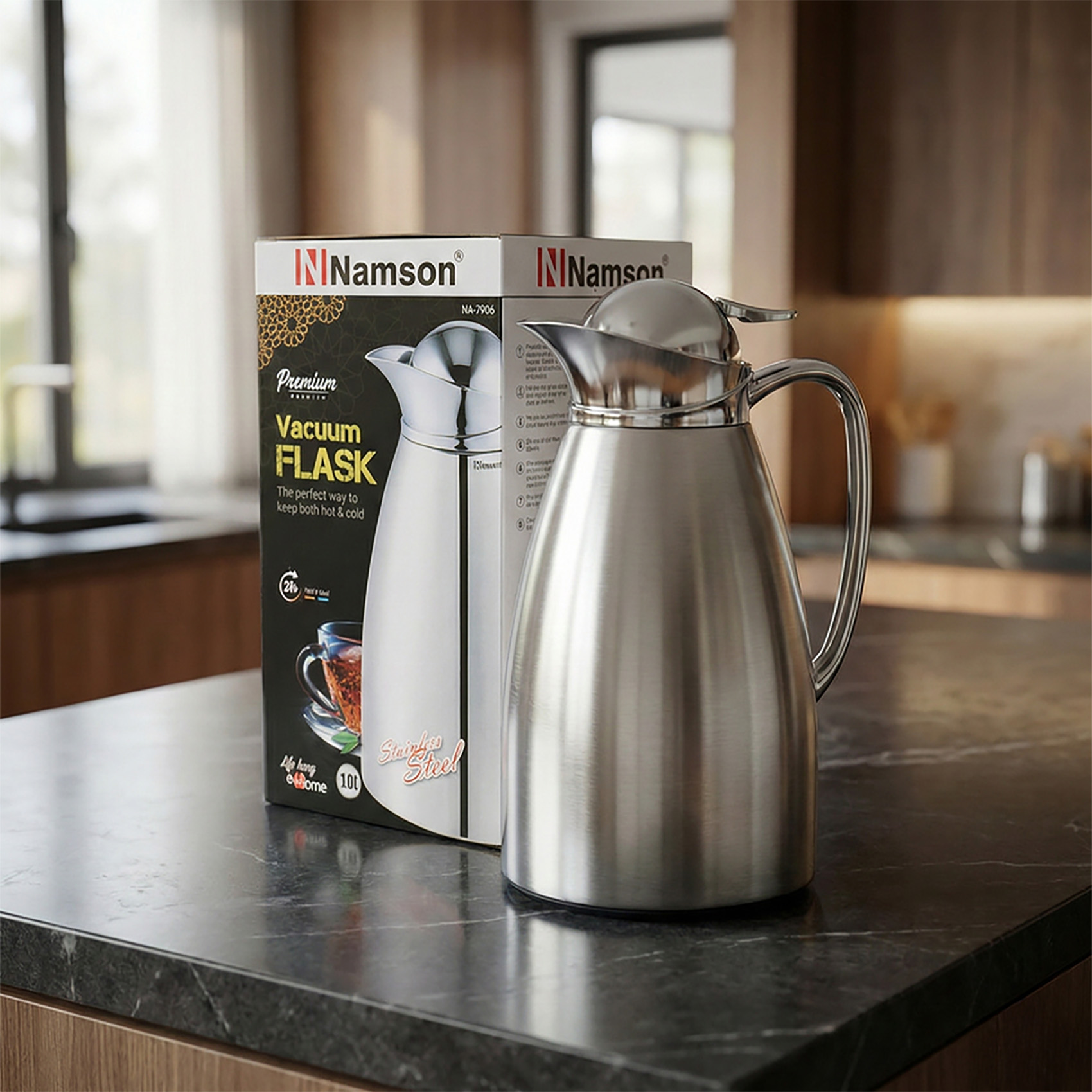 Namson Vacuum Flask 1l Hot & Cold Na-7966 | Compact Construction | Inner Glass Made Of High Quality Material | Ss Body