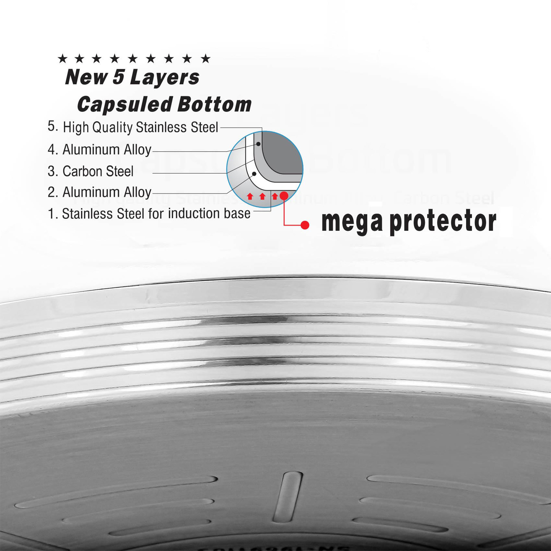 - New 5-layer encapsulated bottom with advanced heat conduction technology