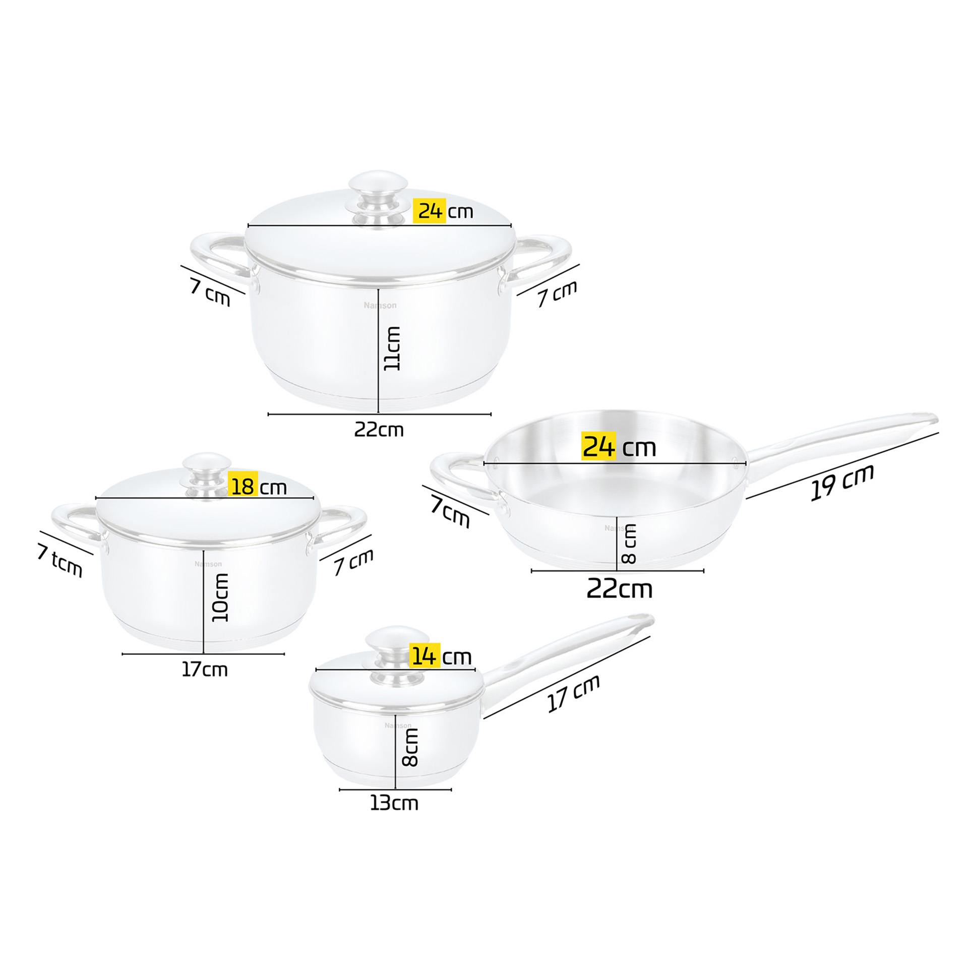 - Saucepan with lid: 14 × 7 cm – 0.9 L