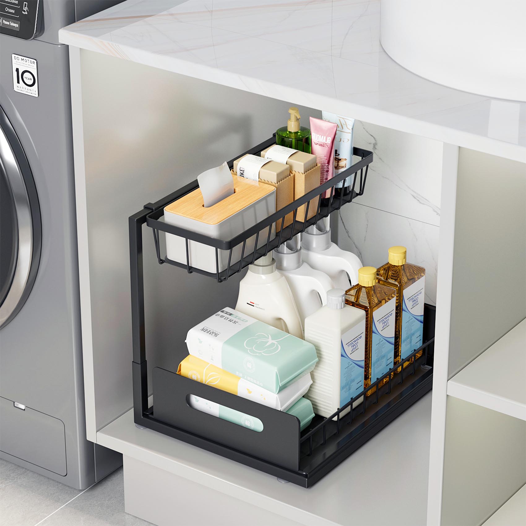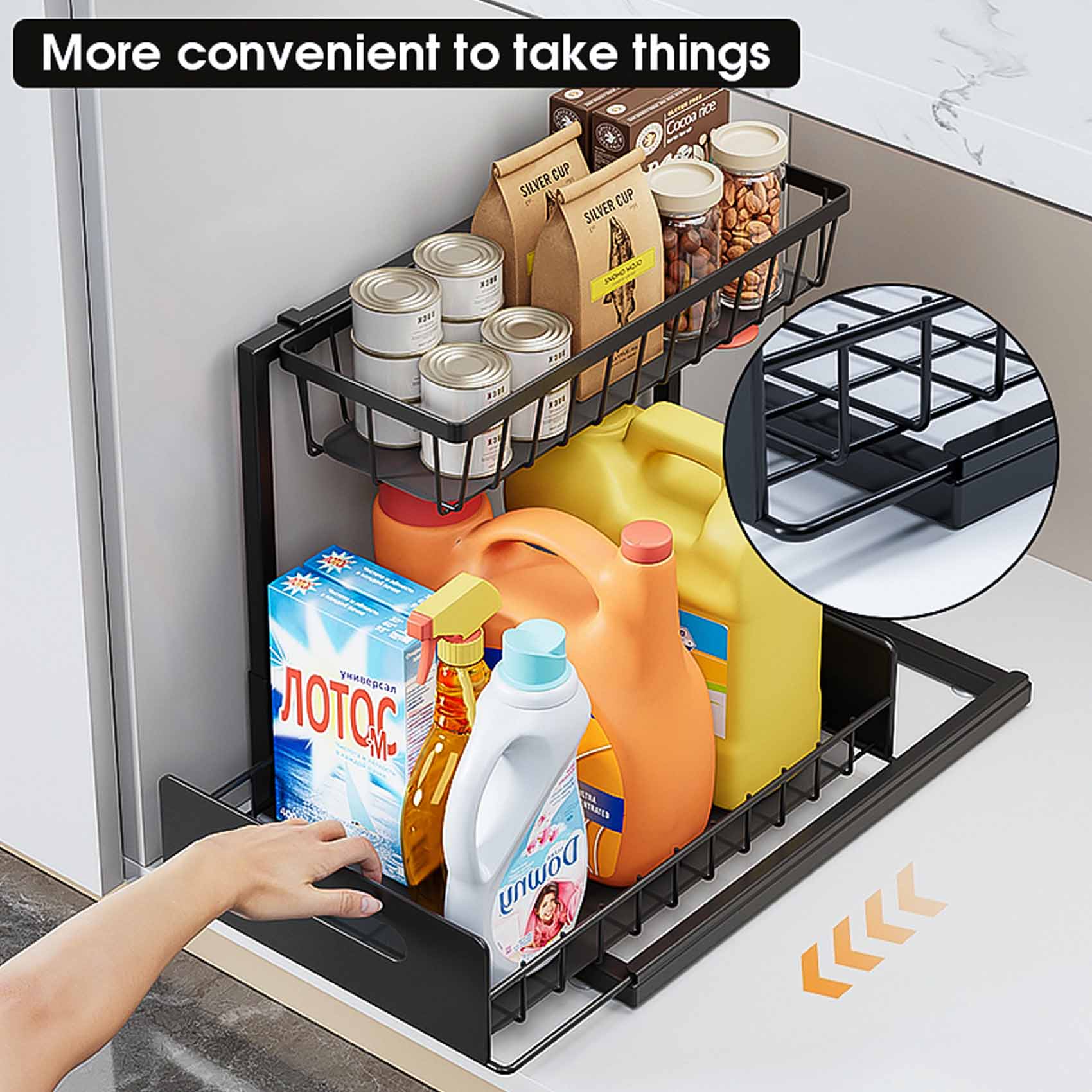 INCLUDES : BASKET SPACER - TWO-LAYER HANGING BASKET - PULL-OUT TRAY SPACER - DRAWER BASKET - BASE FRAME - NON-SLIP SUCTION FOOT