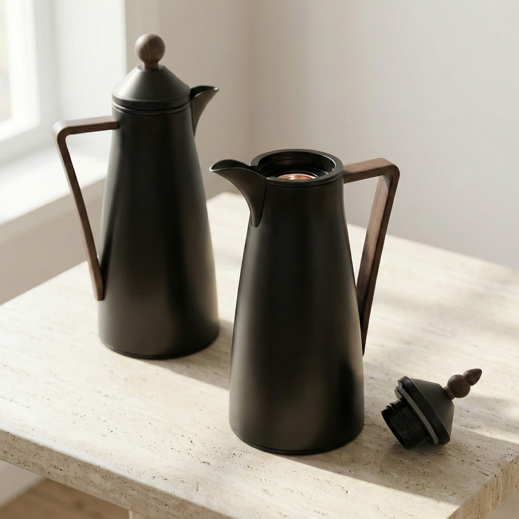 Includes two matching thermal flasks for convenient serving